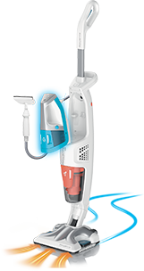 Practic și ușor de folosit, acest aparat înlocuiește un aspirator și un mop. Facilitează